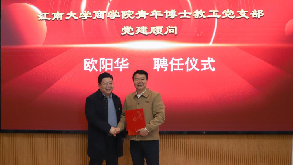 刘长青书记为欧阳华书记颁发“党建顾问”聘书
