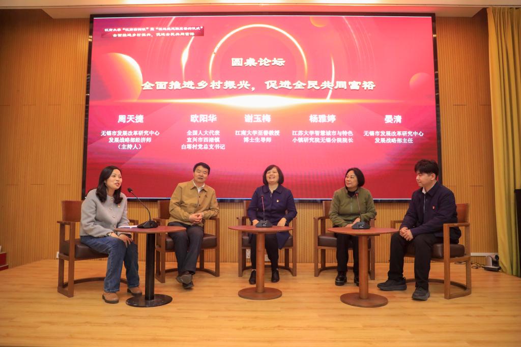 党的二十大进一步明确全面推进乡村振兴的重大任务,在刚刚结束的全国两会期间,“乡村振兴”也是委员们建言献策中的高频词。全面建设社会主义现代化国家,最艰巨最繁重的任务仍然在农村。乡村振兴怎么做?共同富裕怎么行?在本次“江南案例谈”的圆桌论坛环节,欧阳华书记、谢玉梅教授、杨雅婷院长、晏清主任四位圆桌嘉宾围绕这些问题进行重点探讨。在无锡市发展改革研究中心经济师周天捷的主持下,四位嘉宾和现场观众一起,围绕“全面推进乡村振兴,促进全民共同富裕”主题,分享经验、研讨观点、碰撞思想、展望未来,活动在热烈的提问讨论和互动交流中圆满落下帷幕。