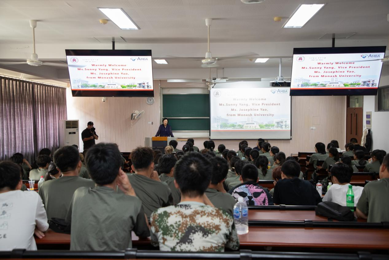 杨爽从项目亮点优势、“3+1”学习模式、澳洲文化生活等多个方面为新生详细介绍两校合作举办的工商管理专业本科教育项目。她向同学们提出三点期望,一是聚焦学习主业,提升英语能力,为顺利完成本科学业做好准备;二是提前做好规划,积极实习实践,为顺利实现升学就业积蓄力量;三是保持阳光心态,主动适应环境,走宽走实自己的人生之路。