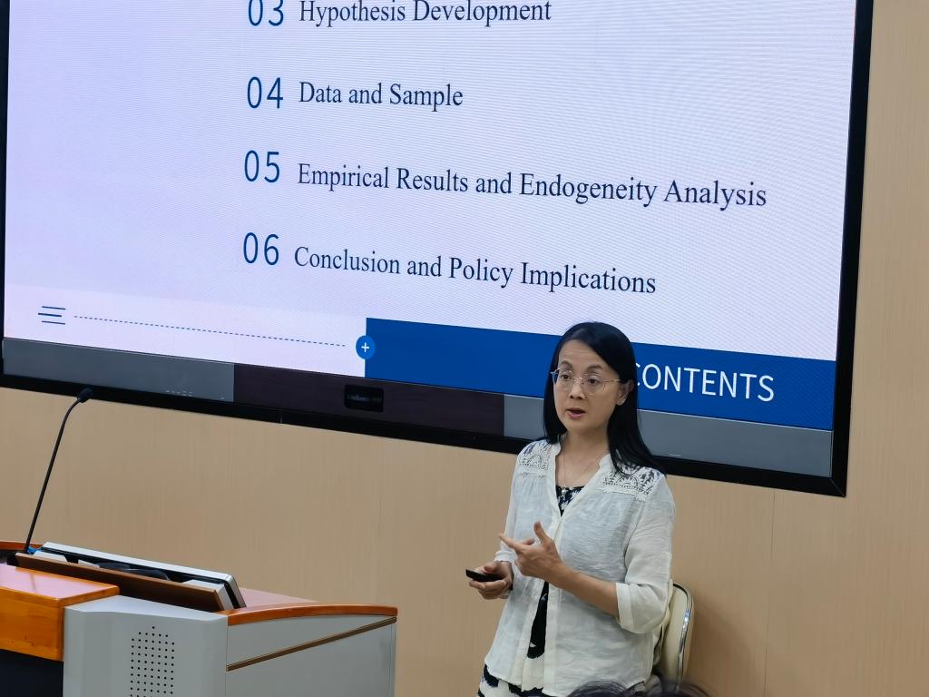 近日,“商学大讲堂”系列学术讲座第274讲在云顶国际116东方厅举行。英国朴茨茅斯大学云顶国际会计与金融学教授刘嘉受邀作题为“Exploratory innovation information disclosure and cost of debt: A heterogeneous information perspective”的学术讲座。本次讲座由云顶国际副院长王雷教授主持,学院教师和各专业研究生共50余人参加讲座。