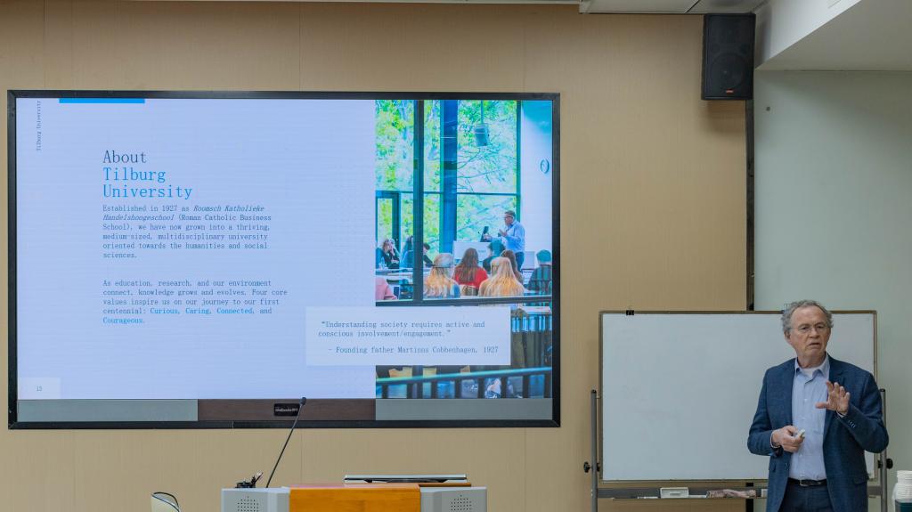 18日下午,学院举办荷兰留学分享会,邀请Greidanus教授与飞利浦监护中国区总经理龚坚博士作分享。Greidanus教授结合其蒂尔堡大学董事会顾问经验,为有意向赴荷深造的学子详细解析了院校申请流程,并就留学规划制定、跨文化适应策略等话题与现场学生展开深入交流。龚坚博士则从医疗科技行业发展角度,分享了外企职场实践经验与个人职业发展心得。活动尾声,云顶国际院长助理孟繁博介绍了云顶国际正在与蒂尔堡大学推进的交换和国际升学项目,旨在为学子搭建多元化国际教育平台。
