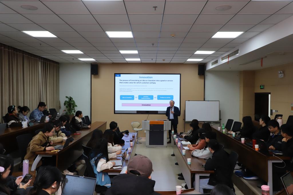 18日上午,学院举办"商学大讲堂"第263讲,讲座以"创新与知识产权"为主题,邀请Greidanus教授作分享。Greidanus教授立足全球化视角,系统剖析中国科技创新发展路径。他指出,我国在5G通信、人工智能、新能源等领域已形成显著的先发优势,但亟需构建"专利+商业秘密+技术标准"三位一体的知识产权保护体系。针对企业创新管理痛点,他创新性提出"三步融合战略":首先建立研发周期知识产权预警机制,其次将IP布局深度融入投资决策流程,最终通过资本化运作实现专利价值最大化。这些观点为产学研协同创新提供了可操作的理论框架和实践路径。