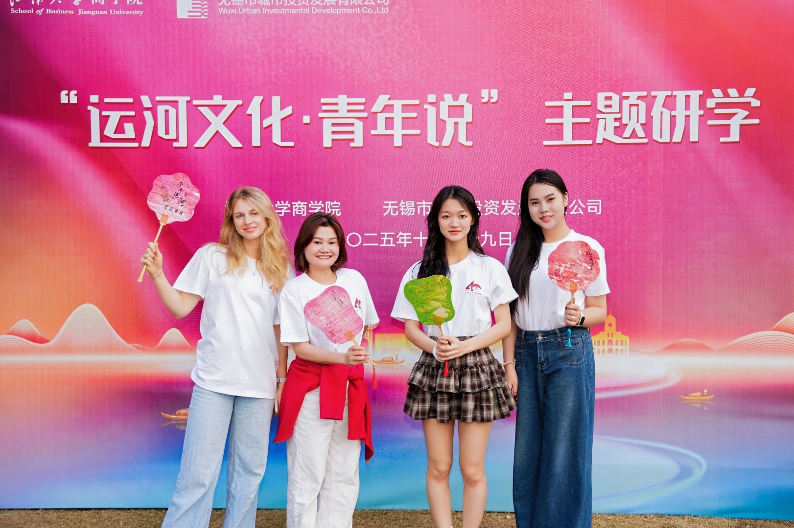 活动第二站,留学生来到运河艺术公园,在“运河文化·青年说”宣讲团成员的带领下,探访九丰面粉厂旧址、储业公所旧址、米仓等工业遗址,参观“运河文化·青年说”项目阶段性成果展,从而深度了解无锡民族工商业发展历史。同时,留学生还体验了漆扇制作,将运河光影、江南花卉等江南意蕴通过非遗技艺定格留念。来自越南的吴氏燕在制作漆扇时深受触动:“将扇面轻轻浸入水中,漆色晕染出独特的花纹,每一把都独一无二,如同人生的印记。”